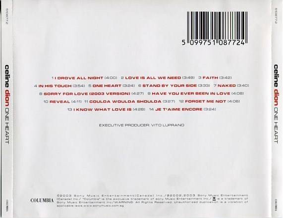 AMM18 Celine Dion One Heart 2003 Sony Singapore English CD FCS4977