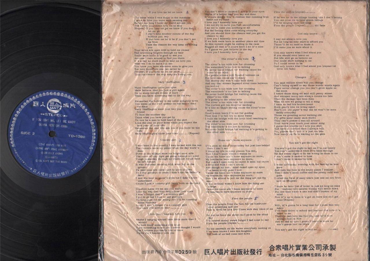AMM18 Olivia Newton John If U Love Me Let Me Know Rare China Taiwan Label English 12" LP ELP2173