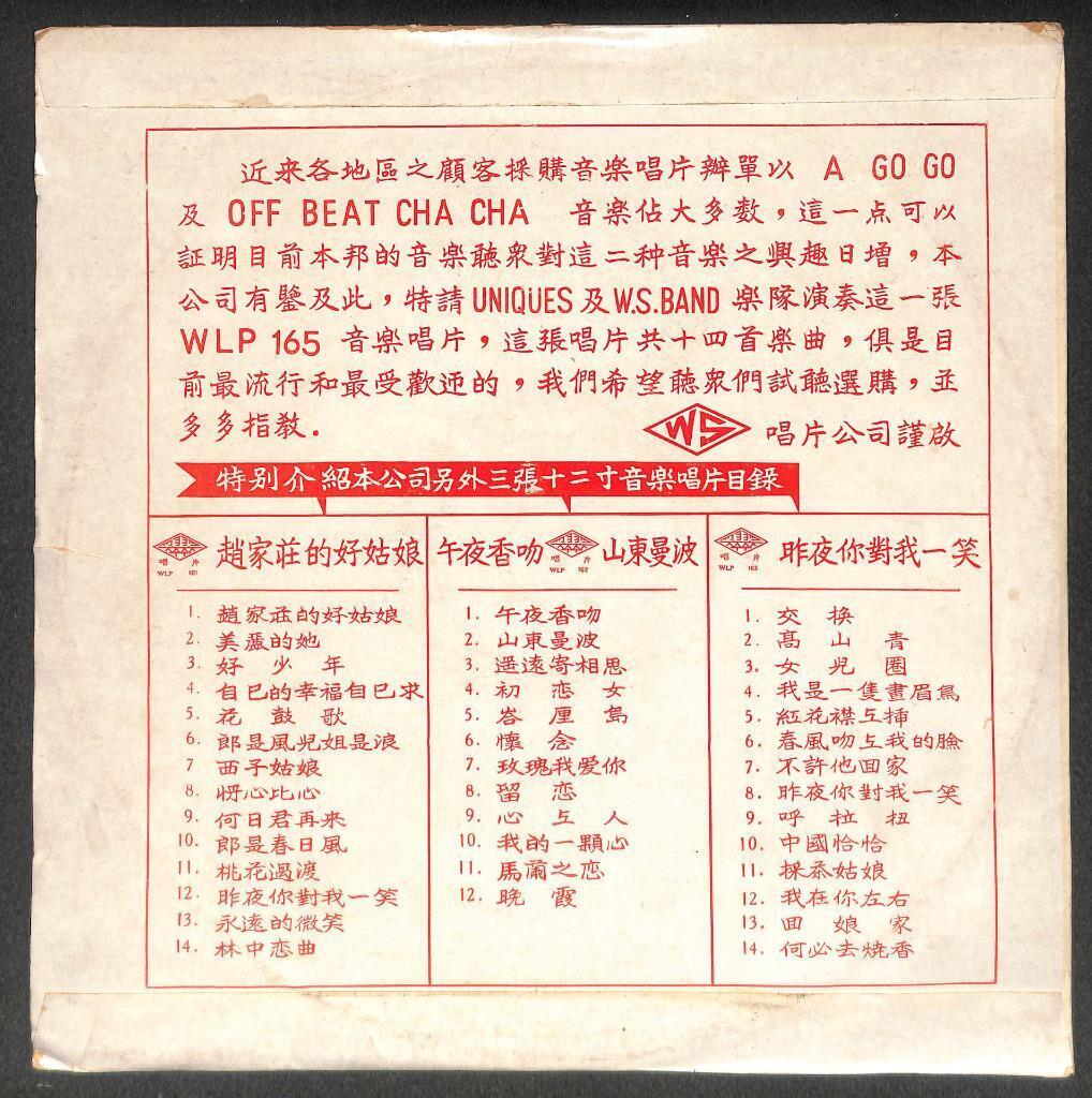 AMM18 Singapore W.S. Band & The Uniques Band A Go Go OB Cha Cha Dancing Chinese Music Chinese 12" LP CLP5490