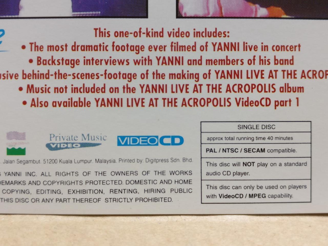 AMM18 Yanni Live At The Acropolis Part 2 1996 Rare Malaysia Video CD VCD FCS9583